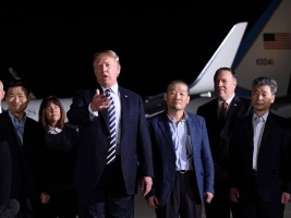 VERENIGDE STATEN - De door Noord-Korea vrijgelaten Amerikaanse gevangenen zijn donderdag aangekomen in de Verenigde Staten. De drie mannen zijn op het militaire vliegveld bij Washington ontvangen door de Amerikaanse president Donald Trump.