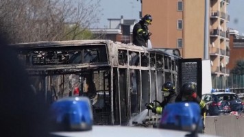 De Italiaanse politie heeft een man gearresteerd die in Milaan een schoolbus had gekaapt met daarin 51 kinderen. Nadat hij de bus had verlaten stak hij het voertuig in brand.