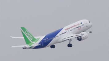 CHINA - Het eerste passagiersvliegtuig van volledig Chinese makelij heeft voor het eerst een langeafstandsvlucht gemaakt. De C919 landde na een 1300 kilometer lange vlucht van ruim twee uur en twintig minuten veilig op de luchthaven van Xi'an, na vertrokk...