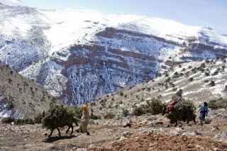 MAROKKO - Een voor Marokko ongebruikelijke kou brengt duizenden bewoners in het Atlasgebergte in de problemen. Zware sneeuwval en lage temperaturen hebben een aantal transportroutes afgesloten, waardoor de Atlasbewoners zonder voedsel dreigen te komen.