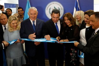 De Guatemalaanse president Jimmy Morales en de Israëlische premier Benjamin Netanyahu waren aanwezig bij de opening van de ambassade. De mannen werden vergezeld door hun partners.