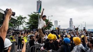 Sommige demonstranten bouwden barricades om het verkeer in het hart van het Aziatische financiële centrum te blokkeren. Bijna vijfduizend manschappen van de oproerpolitie zijn aanwezig.