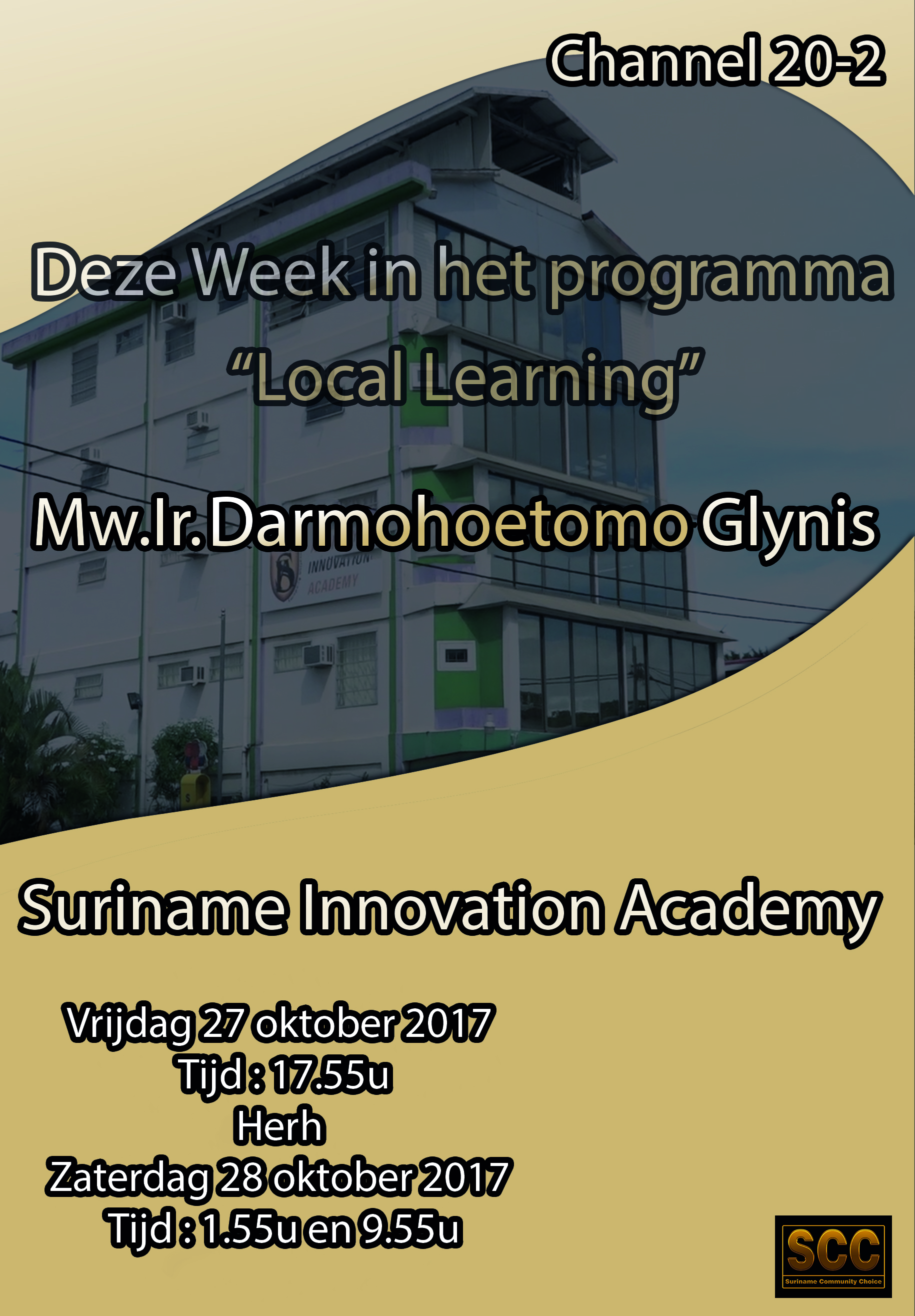 Vandaag in het programma 'Local Learning' hebben wij een interview met mw. Ir. Glynis Darmohoetomo, directeur van Stichting Business Innovation, die ons meer informatie zal geven over één van de outlets van de stichting nl. Suriname Innovation Academy.