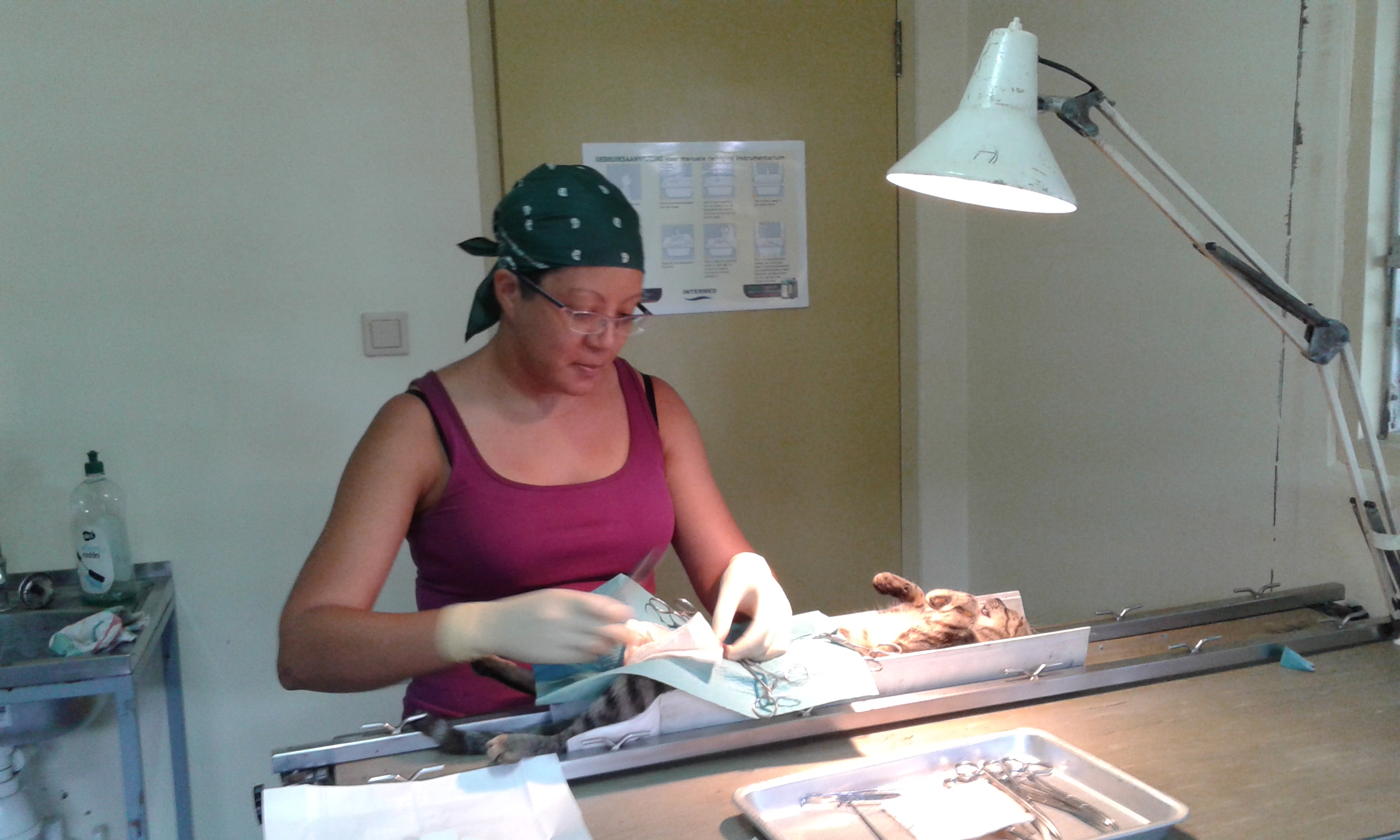 Vanaf 9 oktober hebben we gedurende een week een sterilisatie-actie gehouden op het asiel met medewerking van de Surinaamse dierenarts Lorrain Akrum. In deze 1e actieweek zijn maar liefst 80 dieren onvruchtbaar gemaakt door slechts 1 dierenarts! Vanaf 18 oktober hebben we dierenartsenhulp gehad uit het buitenland in de persoon van Bob Perry (Canada) en zijn assistenten. Met zijn geheel vrijwillige bijdrage hebben we 4 dagen op het asiel geopereerd en 4 dagen op Lelydorp. In totaal heeft hij maar liefst 200 dieren onvruchtbaar gemaakt in 8 dagen!